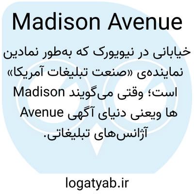 خیابانی در نیویورک که به‌طور نمادین نماینده‌ی «صنعت تبلیغات آمریکا» است؛ وقتی می‌گویند Madison Avenue یعنی دنیای آگهی‌ها و آژانس‌های تبلیغاتی.
