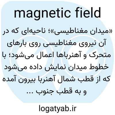 📌 ناحیهای از فضا در نزدیکی یک آهنربا، جریان الکتریکی یا ذره باردار متحرک که در آن نیروی مغناطیسی بر هر آهنربا، جریان الکتریکی یا ذره باردار متحرک دیگری وارد میشود.