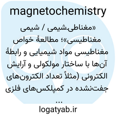 «مغناطیـشیمی / شیمی مغناطیسی»؛ مطالعهٔ خواص مغناطیسی مواد شیمیایی و رابطهٔ آنها با ساختار مولکولی و آرایش الکترونی (مثلاً تعداد الکترونهای جفتنشده در کمپلکسهای فلزی).