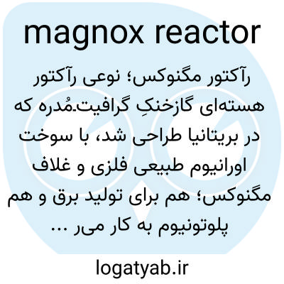 📌 یک راکتور هستهای که از دیاکسید کربن به عنوان خنککننده، گرافیت به عنوان کندکننده و اورانیوم در محفظهای از جنس مگنوکس به عنوان سوخت استفاده میکند.