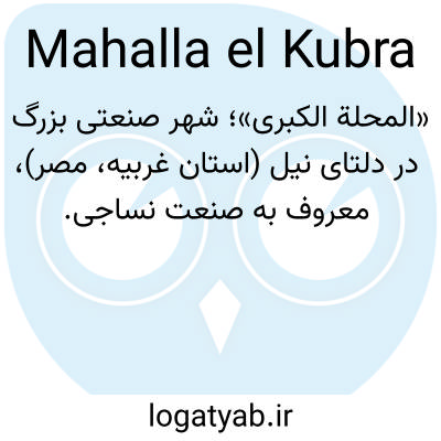 «المحلة الکبری»؛ شهر صنعتی بزرگ در دلتای نیل (استان غربیه، مصر)، معروف به صنعت نساجی.
