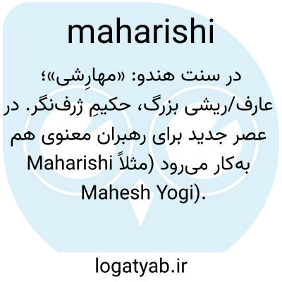 در سنت هندو: «مهارِشی»؛ عارف/ریشی بزرگ، حکیمِ ژرف‌نگر. در عصر جدید برای رهبران معنوی هم به‌کار می‌رود (مثلاً Maharishi Mahesh Yogi).
