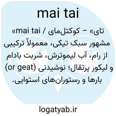 «mai tai / مای‌تای» – کوکتل مشهور سبک تیکی، معمولاً ترکیبی از رام، آب لیموترش، شربت بادام (or­geat) و لیکور پرتقال؛ نوشیدنی بارها و رستوران‌های استوایی.