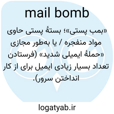 📌 همچنین mail-bomb برای ارسال یک بمب پستی به (یک آدرس ایمیل یا شبکه کامپیوتری).