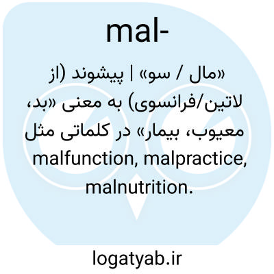 📌 یک شکل ترکیبی به معنای «بد»، «نادرست»، «بیمار» که در اصل در کلمات قرضی از زبان فرانسوی (malapert) وجود دارد؛ بر اساس این مدل، در شکلگیری کلمات دیگر (malfunction؛ malcontent) استفاده میشود.
