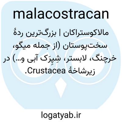 Malacostracan، mal-a-kos′tra-kan، اسم. فردی متعلق به زیررده‌ای از سخت‌پوستان، شامل میگوها، خرچنگ‌ها و غیره. - صفت. متعلق به این رده - همچنین Malacos′tracous. - صفت.