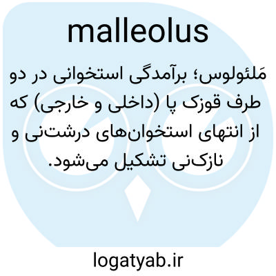 قوزک پا، ma-lē′ō-lus، اسم. برآمدگی استخوانی در دو طرف مچ پا. - صفت.