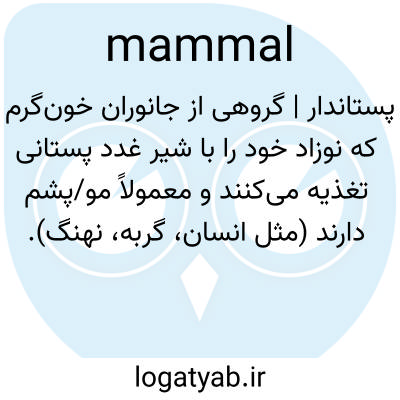 📌 هر مهرهداری از ردهٔ پستانداران، که بدنش کم و بیش پوشیده از مو است، به نوزادانش شیر میدهد و آنها را از غدد پستانیاش تغذیه میکند، و به استثنای تکسوراخیان تخمگذار، نوزادان زنده به دنیا میآورد.