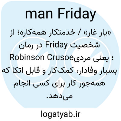 «یار غار» / خدمتکار همه‌کاره؛ از شخصیت Friday در رمان Robinson Crusoe؛ یعنی مردی بسیار وفادار، کمک‌کار و قابل اتکا که همه‌جور کار برای کسی انجام می‌دهد.