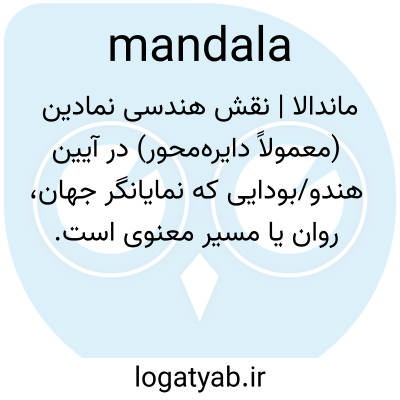 ماندالا | نقش هندسی نمادین (معمولاً دایره‌محور) در آیین هندو/بودایی که نمایانگر جهان، روان یا مسیر معنوی است.