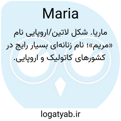 ماریا. شکل لاتین/اروپایی نام «مریم»؛ نام زنانه‌ای بسیار رایج در کشورهای کاتولیک و اروپایی.