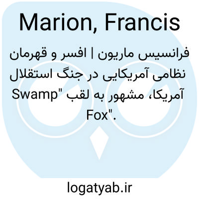 📌 یک ژنرال آمریکایی و رهبر چریکی جنگ انقلاب. ماریون مجموعهای از نبردهای کوچک، شدید و موفق را علیه بریتانیاییها در کارولینای جنوبی انجام داد و به «روباه مرداب» معروف شد.