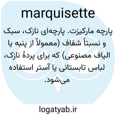 پارچه مارکیزت. پارچه‌ای نازک، سبک و نسبتاً شفاف (معمولاً از پنبه یا الیاف مصنوعی) که برای پردهٔ نازک، لباس تابستانی یا آستر استفاده می‌شود.