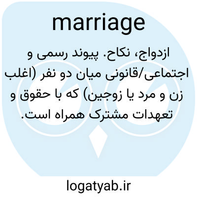ازدواج، نکاح. پیوند رسمی و اجتماعی/قانونی میان دو نفر (اغلب زن و مرد یا زوجین) که با حقوق و تعهدات مشترک همراه است.