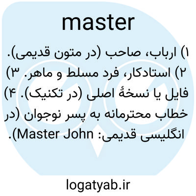 ۱) ارباب، صاحب (در متون قدیمی). ۲) استادکار، فرد مسلط و ماهر. ۳) فایل یا نسخهٔ اصلی (در تکنیک). ۴) خطاب محترمانه به پسر نوجوان (در انگلیسی قدیمی: Master John).