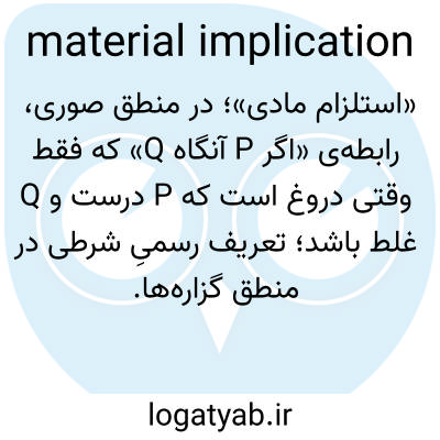 «استلزام مادی»؛ در منطق صوری، رابطه‌ی «اگر P آنگاه Q» که فقط وقتی دروغ است که P درست و Q غلط باشد؛ تعریف رسمیِ شرطی در منطق گزاره‌ها.