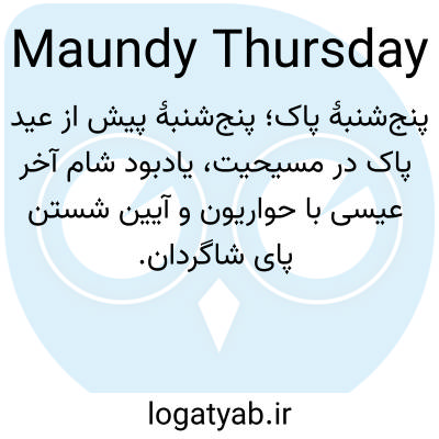 📌 پنجشنبه هفته مقدس، یادبود شام آخر عیسی و شستن پاهای شاگردان در آن روز.