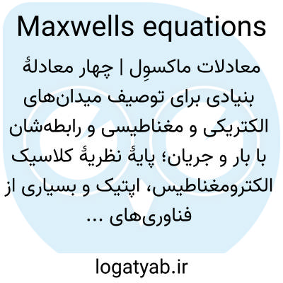 📌 چهار معادله که شامل قوانین اساسی حاکم بر الکتریسیته و مغناطیس هستند و بنابراین نقشی مشابه قوانین حرکت نیوتن در مکانیک در مطالعه الکتریسیته و مغناطیس ایفا میکنند.