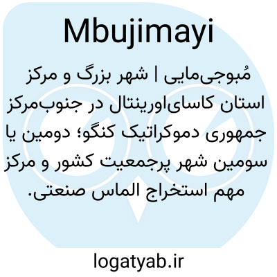 📌 شهری در جمهوری دموکراتیک کنگو جنوبی (زئیر سابق): معدن الماس. جمعیت: ۸۲۱۰۰۰ نفر (تخمین ۲۰۰۵)