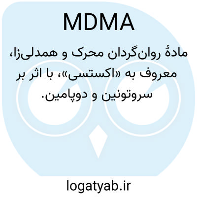 📌 متیلن دی‌اکسی‌متامفتامین: یک مشتق آمفتامین، C11 H15 NO2، که مهارها را کاهش می‌دهد و تا زمان ممنوعیت آن در ایالات متحده در سال ۱۹۸۵ در روان‌درمانی مورد استفاده قرار می‌گرفت.