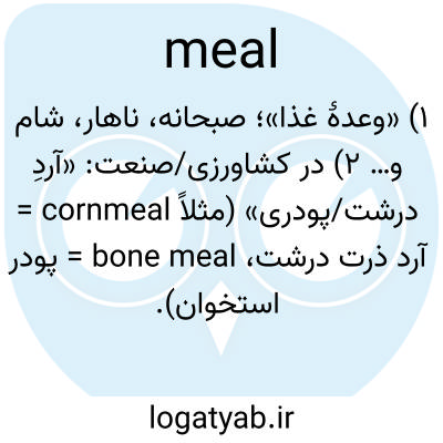 📌 غذایی که به ویژه در یکی از مناسبتهای معمول و همیشگی برای صرف غذا در طول روز، به عنوان صبحانه، ناهار یا شام، سرو و خورده میشود.