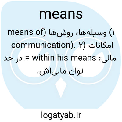 ۱) وسیله‌ها، روش‌ها (means of communication). ۲) امکانات مالی: within his means = در حد توان مالی‌اش.