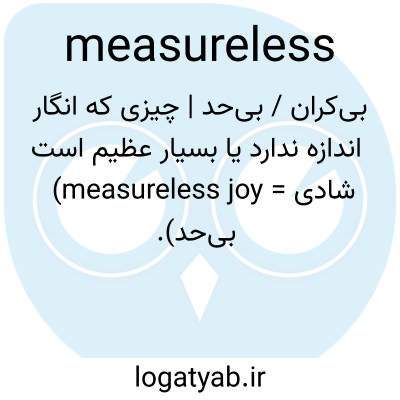 بی‌کران / بی‌حد | چیزی که انگار اندازه ندارد یا بسیار عظیم است (measureless joy = شادی بی‌حد).