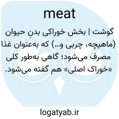 گوشت | بخش خوراکی بدنِ حیوان (ماهیچه، چربی و…) که به‌عنوان غذا مصرف می‌شود؛ گاهی به‌طور کلی «خوراک اصلی» هم گفته می‌شود.