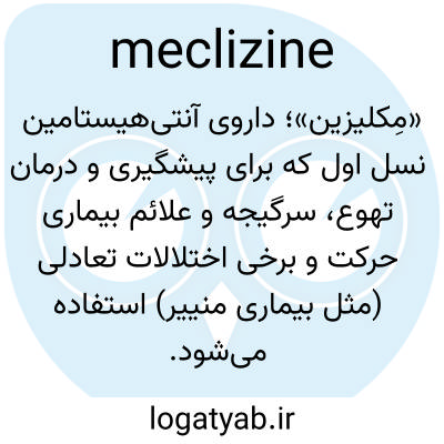 📌 ترکیبی با فرمول شیمیایی C25H27ClN2 که برای پیشگیری از حالت تهوع ناشی از بیماری حرکت، بارداری و غیره استفاده میشود.