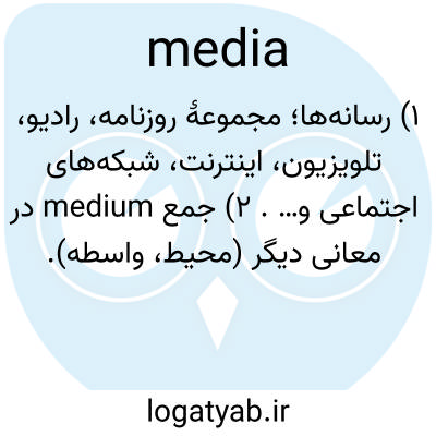 📌 (معمولاً با فعل جمع استفاده میشود)، وسیله ارتباطی، مانند رادیو و تلویزیون، روزنامهها، مجلات و اینترنت، که به طور گسترده به مردم دسترسی دارند یا بر آنها تأثیر میگذارند.