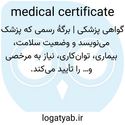 گواهی پزشکی | برگهٔ رسمی که پزشک می‌نویسد و وضعیت سلامت، بیماری، توان‌کاری، نیاز به مرخصی و… را تأیید می‌کند.