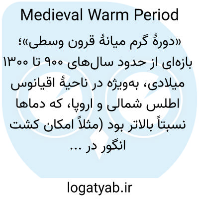 📌 دوره زمانی، حدود ۹۰۰ تا ۱۴۰۰ میلادی، که در طی آن دمای هوا در بسیاری از نقاط جهان گرمتر بود. MWP