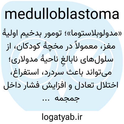«مدولوبلاستوما»؛ تومور بدخیم اولیهٔ مغز، معمولاً در مخچهٔ کودکان، از سلول‌های نابالغِ ناحیهٔ مدولاری؛ می‌تواند باعث سردرد، استفراغ، اختلال تعادل و افزایش فشار داخل جمجمه شود.