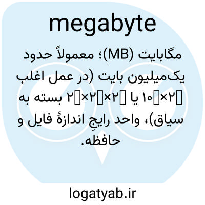 مگابایت (MB)؛ معمولاً حدود یک‌میلیون بایت (در عمل اغلب ۲⁰×۱۰⁶ یا ۲⁰×۲⁰×۲⁰ بسته به سیاق)، واحد رایجِ اندازهٔ فایل و حافظه.