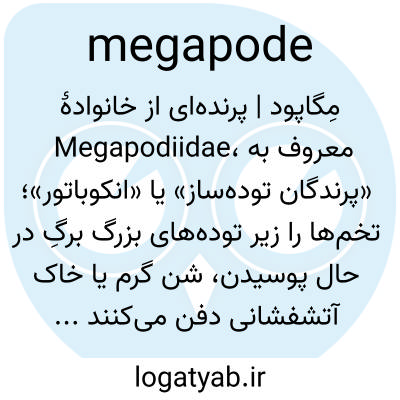 📌 هر یک از چندین پرنده استرالیایی گالیناسه با پاهای بزرگ و بالهای کوتاه از خانواده مگاپودیدا که معمولاً تپهای کمپوستمانند از گیاهان پوسیده به عنوان محل جوجهکشی تخمهای خود میسازند.