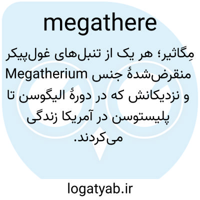 📌 هر یک از حیوانات عظیمالجثه و تنبلمانند از جنس منقرضشدهی مگاتریوم، یا جنسهای نزدیک به آن، که از دورههای الیگوسن تا پلیستوسن میزیستند.