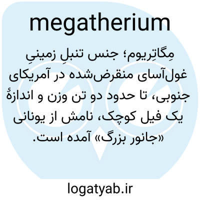 📌 تنبل زمینی بزرگ و منقرض‌شده‌ای از جنس مگاتریوم که از دوره میوسن تا پلیستوسن، عمدتاً در آمریکای جنوبی زندگی می‌کرد. این جانور به بزرگی یک فیل بود، چنگال‌ها و دندان‌های بلند و خمیده‌ای فقط در کناره‌های فک خود داشت و گیاهان می‌خورد. مگاتریوم بیشتر به تنبل دو انگشتی امروزی شباهت داشت تا تنبل سه انگشتی.