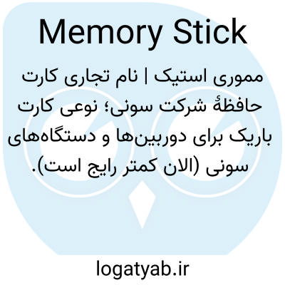 مموری استیک | نام تجاری کارت حافظهٔ شرکت سونی؛ نوعی کارت باریک برای دوربین‌ها و دستگاه‌های سونی (الان کمتر رایج است).