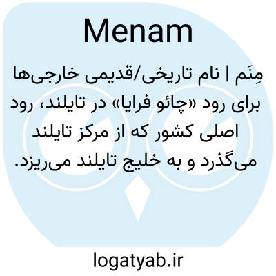 مِنَم | نام تاریخی/قدیمی خارجی‌ها برای رود «چائو فرایا» در تایلند، رود اصلی کشور که از مرکز تایلند می‌گذرد و به خلیج تایلند می‌ریزد.