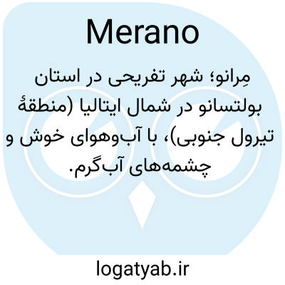 📌 نام آلمانی: Meran. شهری و تفرجگاهی در شمال شرقی ایتالیا، در دامنههای آلپ مرکزی: پایتخت تیرول (قرن ۱۲ تا ۱۵)؛ تحت حکومت اتریش تا سال ۱۹۱۹. جمعیت: ۳۳،۶۵۶ (۲۰۰۱)