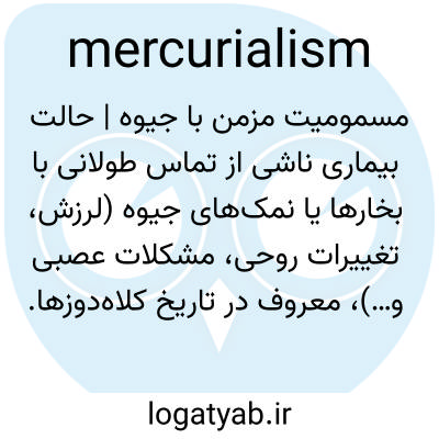 مسمومیت مزمن با جیوه | حالت بیماری ناشی از تماس طولانی با بخارها یا نمک‌های جیوه (لرزش، تغییرات روحی، مشکلات عصبی و…)، معروف در تاریخ کلاه‌دوزها.