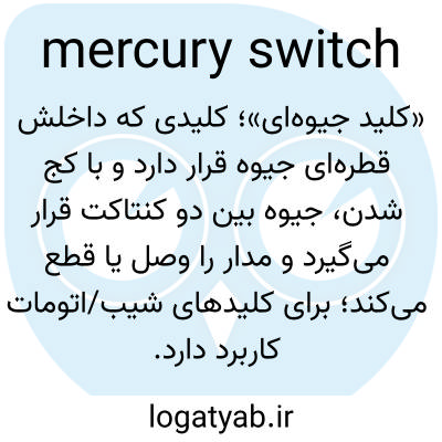📌 یک کلید بسیار بیصدا که با حرکت دادن یک ویال حاوی مخزنی از جیوه به گونهای که کنتاکتها را بپوشاند یا از حالت پوشش خارج کند، یک مدار الکتریکی را باز و بسته میکند.