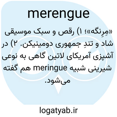 «مِرِنگه»؛ ۱) رقص و سبک موسیقی شاد و تندِ جمهوری دومینیکن. ۲) در آشپزی آمریکای لاتین گاهی به نوعی شیرینی شبیه meringue هم گفته می‌شود.