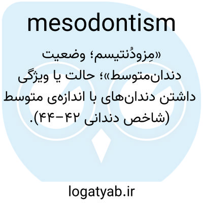 «مِزودُنتیسم؛ وضعیت دندان‌متوسط»؛ حالت یا ویژگی داشتن دندان‌های با اندازه‌ی متوسط (شاخص دندانی ۴۲–۴۴).