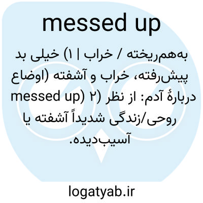 به‌هم‌ریخته / خراب | ۱) خیلی بد پیش‌رفته، خراب و آشفته (اوضاع messed up) ۲) دربارهٔ آدم: از نظر روحی/زندگی شدیداً آشفته یا آسیب‌دیده.