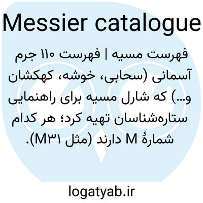 📌 نجوم، کاتالوگی از ۱۰۳ جرم غیرستارهای، مانند سحابیها و کهکشانها، که در سالهای ۱۷۸۱ تا ۱۷۸۶ تهیه شده است. در این کاتالوگ، هر جرم با شمارهاش مشخص میشود، برای مثال، کهکشان آندرومدا با M31 شناخته میشود.