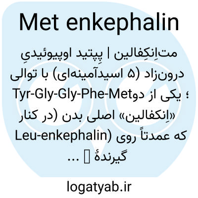 متاِنکِفالین | پِپتید اوپیوئیدیِ درونزاد (۵ اسیدآمینهای) با توالی Tyr-Gly-Gly-Phe-Met؛ یکی از دو «اِنکفالین» اصلی بدن (در کنار Leu-enkephalin) که عمدتاً روی گیرندهٔ δ و تا حدی μ اوپیوئیدی اثر میکند و در تنظیم درد، ایمنی و رشد نقش دارد.