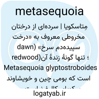 مِتاسکویا | سرده‌ای از درختان مخروطی معروف به «درخت سپیده‌دم سرخ» (dawn redwood)؛ تنها گونهٔ زندهٔ آن Metasequoia glyptostroboides است که بومی چین و خویشاوند سکویای کالیفرنیاست و در پارک‌ها به‌عنوان درخت زینتی کاشته می‌شود.