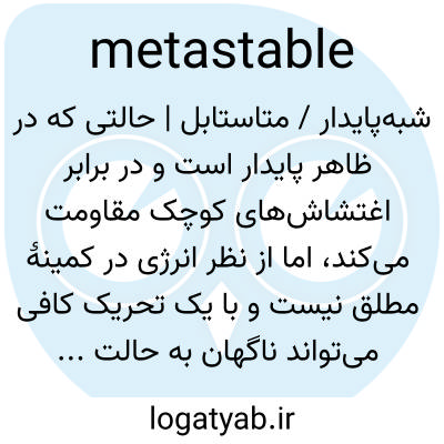📌 فیزیک، شیمی، همچنین مربوط به جسم یا سیستمی که در سطح انرژی، حالت شبه پایدار بالاتر از حالت پایدارتر وجود دارد و برای گذار به حالت پایدارتر، نیاز به افزودن مقدار کمی انرژی دارد.