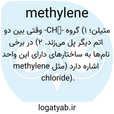 متیلن؛ ۱) گروه -CH₂- وقتی بین دو اتم دیگر پل می‌زند. ۲) در برخی نام‌ها به ساختارهای دارای این واحد اشاره دارد (مثل methylene chloride).